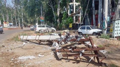 बिजली बहाली को जुटे कर्मचारी, तलवाड़ा में तूफान के कारण तारों पर गिरी थी पेड़ों की डालियां