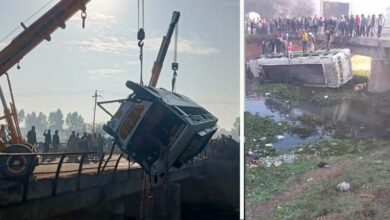 ट्रक से टक्कर के बाद नाले में गिरी निजी कंपनी की बस, 6 लोगों की मौत