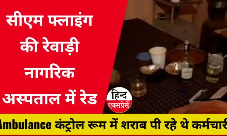 सीएम फ्लाइंग की रेवाड़ी नागरिक अस्पताल में रेड, एम्बुलेंस कंट्रोल रूम में शराब पी रहे थे कर्मचारी