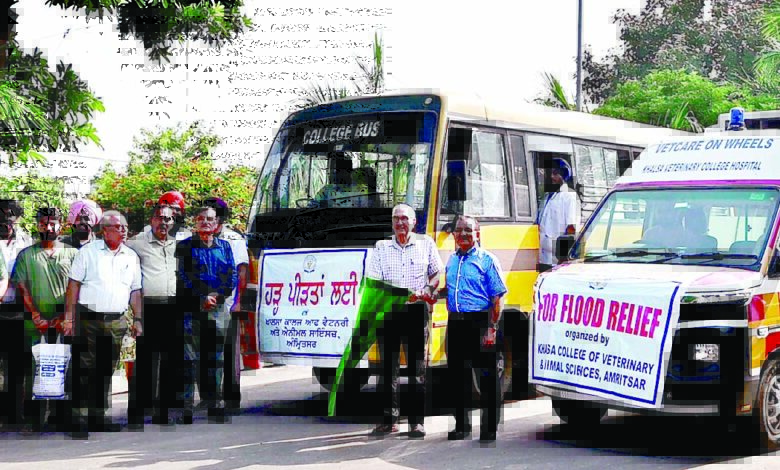 पशुधनों को बीमारियों से बचाने के उद्देश्य से खालसा कॉलेज ऑफ वेटरनरी एंड एनिमल साइंसेज की पशु चिकित्सा टीम ने पिछले कुछ दिनों से बाढ़ की विभीषिका झेल रहे रमदास, अजनाला, गग्गोमहल, मच्छीवाहला, गोनोवाल आदि ग्रामीण क्षेत्रों के पशुपालकों को संबंधित फार्मों और घर-घर जाकर दवाइयां वितरित कीं। खालसा कॉलेज गवर्निंग काउंसिल के अध्यक्ष सत्यजीत सिंह मजीठिया और आनरेरी सचिव राजिंदर मोहन सिंह छीना के निर्देश पर काउंसिल के संयुक्त सचिव गुरप्रीत सिंह गिल ने कॉलेज के प्राचार्य डा. हरीश कुमार वर्मा के सहयोग से बाढ़ प्रभावित गांवों में उक्त दवाइयां वितरित कीं और सुझाव भी दिए। इस अवसर पर गिल ने बताया कि मौजूदा हालात में राज्य के कुछ गांव बाढ़ की चपेट में आ गए हैं। जिससे फसलों और घरों को काफी नुकसान हुआ है। इसके साथ ही उक्त बाढ़ के कारण कई पशुओं की भी जान चली गई है।