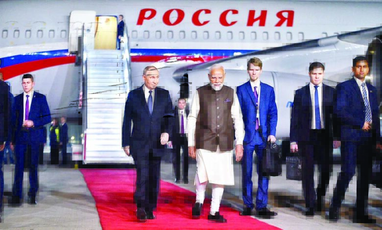 रूसी राष्ट्रपति व्लादिमीर पुतिन गुरुवार को दो दिवसीय दौरे पर भारत आए हैं। रूस-यूक्रेन युद्ध शुरू होने के बाद राष्ट्रपति पुतिन का यह पहला भारत दौरा है, जो दोनों देशों के लिहाज से बेहद ही अहम माना जा रहा है। भारत दौरे से पहले राष्ट्रपति पुतिन ने एक इंटरव्यू में उन्होंने कहा कि भारत एक शक्तिशाली देश है, जो किसी के दबाव में नहीं आता है। इंटरव्यू के दौरान राष्ट्रपति पुतिन ने कहा कि मैं इस बात से सबसे ज्यादा खुश हूं कि मेरी बात मेरे दोस्त, प्रधानमंत्री मोदी से होने वाली है। भारत में इस मुलाकात को लेकर हम बहुत पहले ही सहमति जता चुके थे। हमारे बीच चर्चा करने को बहुत कुछ है, क्योंकि भारत के साथ हमारे साझा सहयोग का विस्तार बहुत बड़ा है। इंटरव्यू में पुतिन से भारत-रूस के बीच संभावित समझौतों को लेकर सवाल किया गया तो उन्होंने कहा कि भारत एक महान देश है, जिसकी अर्थव्यवस्था 7.7 प्रतिशत की दर से तेजी से विकसित हो रही है।