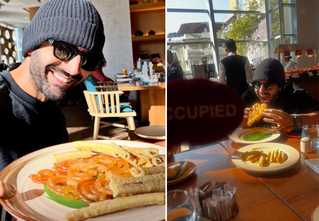 कार्तिक आर्यन ने उठाया जलेबी और कुरकुरे फाफड़ा का लुत्फ