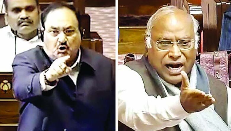 नई दिल्ली-संसद के शीतकालीन सत्र के 9वें दिन वंदे मातरम पर बहस गरमा गई। चर्चा के दौरान बीजेपी के राष्ट्रीय अध्यक्ष जेपी नड्डा द्वारा जवाहरलाल नेहरू पर की गई टिप्पणी के बाद राज्यसभा में हंगामा मचा। कांग्रेस अध्यक्ष मल्लिकार्जुन खडग़े ने नेहरू को बहस का केंद्र बनाने पर सवाल उठाया। श्री नड्डा ने कांग्रेस पर संस्कृति से समझौता करने का आरोप लगाया, वहीं श्री खडग़े ने आरोपों को विकृत और असत्य बताया, जिससे दोनों नेताओं के बीच तीखी नोकझोंक हुई। अंतत: अध्यक्ष उपराष्ट्रपति सीपी राधाकृष्णन के हस्तक्षेप के बाद श्री नड्डा ने कहा कि सरकार केवल ऐतिहासिक तथ्यों को सही करना चाहती है, न कि नेहरू की छवि को धूमिल करना।