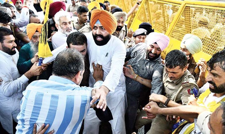 हरियाणा में गैंगस्टरवाद बढ़ रहा है और यूपी में भी कानून व्यवस्था खराब है और दलितों पर बहुत अत्याचार हो रहे हैं। तीनों राज्यों में भाजपा की सरकार है। भाजपा नेताओं को इन राज्यों पर भी बोलना चाहिए। आप नेताओं को चंडीगढ़ पुलिस ने हिरासत में लिया, पानी की बौछारें बरसाई, धक्का-मुक्की के दौरान कई कार्यकर्ता चोटिल, मंत्री हरजोत बैंस की पगड़ी उतरी। हर साल अक्तूबर में मंडियों में धान आ जाता है। हरभजन सिंह ईटीओ ने कहा कि यह जानते हुए केंद्र सरकार ने जानबूझकर लिफ्टिंग नहीं करवाई । हरजोत बैंस ने कहा कि बेहद दुर्भाग्य की बात है कि आज पूरे देश के लोग दिवाली मना रहे हैंए वहीं पंजाब के किसान मंडियों में धक्के खा रहे हैं। वहीं, लालजीत भुल्लर ने कहा कि इंदिरा गांधी की तरह मोदी सरकार पंजाब के साथ धक्का कर रही है।