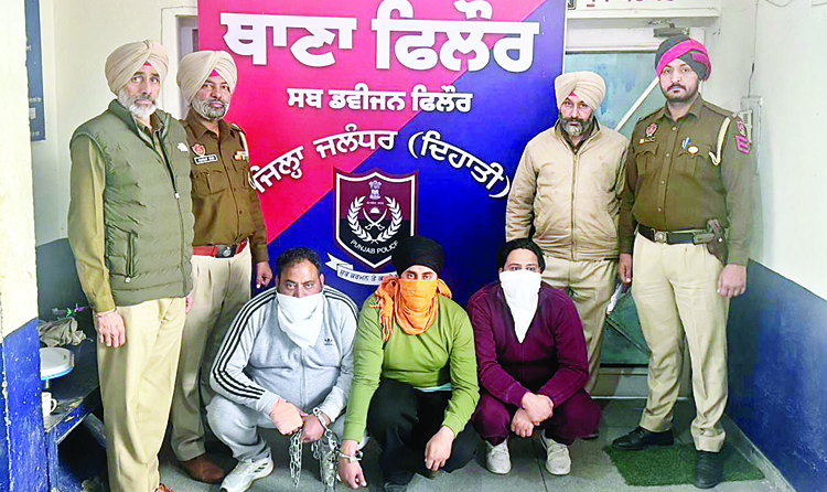 जालंधर ग्रामीण पुलिस ने संगठित अपराध के खिलाफ बड़ी सफलता हासिल करते हुए तीन व्यक्तियों को गिरफ्तार करके भूमि धोखाधड़ी रैकेट का भंडाफोड़ किया है, जो जाली दस्तावेजों का उपयोग करके लगभग दस करोड़ मूल्य की दस एकड़ प्रमुख भूमि को धोखाधड़ी से पंजीकृत करने का प्रयास कर रहे थे। इस मामले में खुलासा करते हुए जालंधर ग्रामीण पुलिस के एसएसपी हरकमलप्रीत सिंह खख ने कहा कि विशिष्ट खुफिया सूचनाओं के बाद फिल्लौर पुलिस ने एक सावधानीपूर्वक योजनाबद्ध अभियान चलायाए जिसके परिणामस्वरूप ये महत्वपूर्ण गिरफ्तारियां हुईं। एसएसपी खख ने बताया कि विश्वसनीय सूचना के आधार पर हमारी टीम ने तीन व्यक्तियों को पकड़ा, जिन्होंने बहादुरक बा गांव भाटिया में दस एकड़ जमीन का फर्जी तरीके से स्वामित्व हासिल करने की योजना बनाई थी।