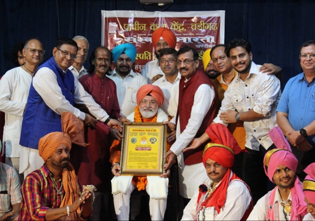 चंडीगढ़ इकाई की और से बलकार सिंह सिद्धू जी को “कला गुरु सम्मान “से सम्मानित किया गया इस खुशी के अवसर पर उनके शिष्यों द्वारा झूमर और लुड्डी नृत्य प्रस्तुत किया गया , जो कि बहुत सराहनीय रहा इस अवसर पर दूसरे चरण में भी गीत के साथ नुक्कड़ नाटक( मंथन आर्ट ) हीरा सिंह और यशपाल के द्वारा तैयार नाटक जिसमें भारतीय संस्कृति की झलक दिखाई दी l दो बच्चों ने नृत्य द्वारा लोगों का मन मोह लिया l जिसमें (चतुरंग )श्री सिल्वेस्टर , (त्रिवट) सुश्री आनंदीया मलिक द्वारा दर्शाया गय!इस अवसर पर संस्कार भारती चंडीगढ़ के मार्गदर्शक प्रो : सौभाग्य वर्धन जी ,मंत्री मनोज कुमार,सह मंत्री श्रीमती भारती वन्दना,अध्यक्ष यशपाल ,उपाध्यक्ष श्रीमती समीरा कौसर,उपाध्यक्ष श्रीमती गुरमीत गोल्डी सहित संस्कार भारती के सभी कार्यकर्ता उपस्थित रहे