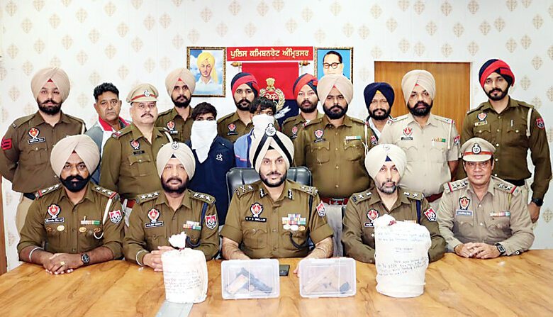 अमृतसर कमिश्नरेट पुलिस ने सीमा पार से हो रही मादक पदार्थों की तस्करी और अवैध हथियारों के कार्टेल का भंडाफोड़ कर बड़ी सफलता हासिल की है। इस ऑपरेशन में दो व्यक्तियों को गिरफ्तार कर उनके कब्जे से 3.5 किलोग्राम हेरोइन, 1.5 किलोग्राम मेथाक्वालोन पाउडर और दो पिस्तौल समेत एक अत्याधुनिक नौ एमएम ग्लॉक बरामद किया है। यह जानकारी देते हुए पंजाब के पुलिस महानिदेशक (डीजीपी) गौरव यादव ने आज बताया कि गिरफ्तार व्यक्तियों की पहचान वंश उर्फ बिल्ला (23), निवासी बिल्ले वाला चौक, अमृतसर, और सोनू चौरसिया (20), निवासी दशमेश नगर, अमृतसर, के रूप में हुई है। डीजीपी ने बताया कि मामले से जुड़े आग-पीछे के संबंधों का पता लगाने के लिए जांच जारी है। इस संबंधी ओर जानकारी देते हुए अमृतसर के पुलिस कमिश्नर (सीपी) गुरप्रीत सिंह भुल्लर ने बताया कि आरोपी वंश उर्फ बिल्ला की मादक पदार्थों की तस्करी में संलिप्तता की पुख्ता जानकारी के आधार पर सीआईए अमृतसर की पुलिस टीमों ने मोहकमपुरा क्षेत्र में जाल बिछाकर उसे गिरफ्तार किया।