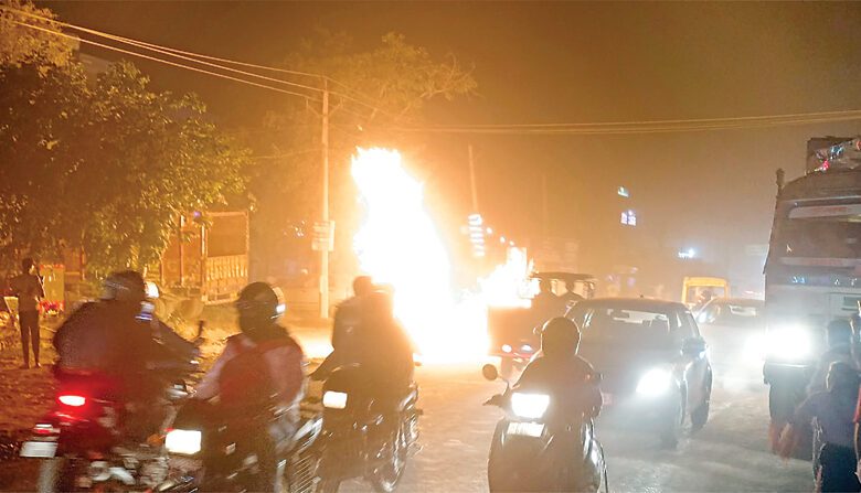 मुबारिकपुर रोड पर गैस पाइप लाइन में भडक़ी आग