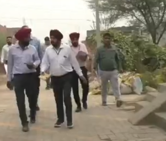 लुधियाना—लुधियाना में कांग्रेस के पूर्व मार्केट कमेटी चेयरमैन दर्शन लाल लड्डू की बन रही बिल्डिंग को चेक करने पहुंचे विजिलेंस अधिकारी।