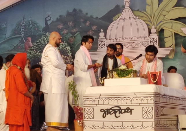 श्री कृष्ण प्रिया जू संकीर्तन मण्डल के तत्वाधान में दिनांक 7 अक्टूबर से 13 अक्टूबर तक सेक्टर 34, के मेला ग्राउंड में रोजाना दोपहर 3 बजे से शाम 7 बजे तक श्री मद भागवत कथा का आज विराम हुआ आज कथा में विश्व विख्यात बागेश्वर धाम के पीठाधीश धीरेंद्र कृष्ण शास्त्री जी महाराज आशीर्वाद देने पहुंचे इस प्राकट्य उत्सव के अवसर पर वृन्दावन से विश्व विख्यात कथा व्यास परम आदरणीय श्री इंद्रेश जी महाराज ने बागेश्वर धाम के पीठाधीश धीरेंद्र कृष्ण शास्त्री जी महाराज का स्वागत किया और इस कार्यक्रम के आयोजक बालीवुड के सुप्रसिद्ध गायक बी – प्राक द्वारा बागेश्वर धाम के पीठाधीश जी को शाल भेट कर स्वागत किया