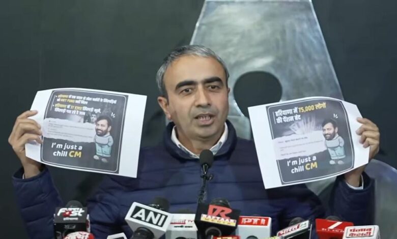 अनुराग ढांडा ने प्रेस कांफ्रेंस के दौरान एक पोस्टर जारी करके हरियाणा के सीएम नायब सिंह को ‘जस्ट चिल सीएम’ बताया है। उन्होंने सीएम नायब सिंह को ऑन रिकॉर्ड झूठ बोलने में पीएचडी तक करार दे दिया। हरियाणा के सीएम नायब सिंह ने झूठ बोलने में पीएचडी कर ली है और नई नीति ‘आगे दौड़ पीछे छोड़’ पर काम कर रहे हैं। हरियाणा में जर्जर खेल मैदानों के कारण मारे जा रहे थे और अब नायब सिंह सरकार ने खिलाड़ियों को भूखा मारने की कोशिशों में जुटी है। अनुराग ढांडा ने मुख्यमंत्री से सीधा सवाल करते हुए कहा कि हरियाणा के खिलाड़ी पूरे दिन मैदान में अपना खून पसीने बहाते हैं और उनके माता पिता के खून पसीने की कमाई से ओलिंपिक मैडल जीत कर आते हैं वो खिलाड़ी हरियाणा के जर्जर मैदानों में पोल गिरने से मारे गए। ये क्या कम था जो अब आपने 37000 खिलाड़ियों की डाइट का पैसा रोक दिया?