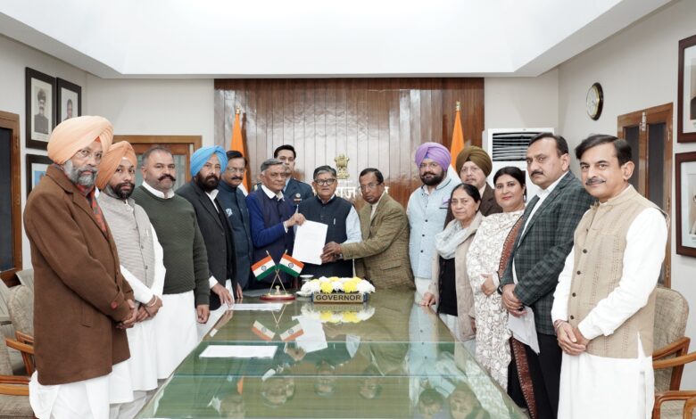 चंडीगढ़, 29 जनवरी: सचखंड श्री हरिमंदिर साहिब को जाने वाली हेरिटेज स्ट्रीट में स्थित डॉ. भीमराव आंबेडकर की प्रतिमा की बेअदबी और वहां बनी हुई संविधान की पत्थर की कृति को जलाने की घटना की स्वतंत्र एजेंसी से जांच की मांग करते हुए भारतीय जनता पार्टी (भा.ज.पा.) पंजाब के वरिष्ठ नेताओं का एक प्रतिनिधिमंडल आज चंडीगढ़ में पंजाब के राज्यपाल गुलाब चंद कटारिया से मिला।