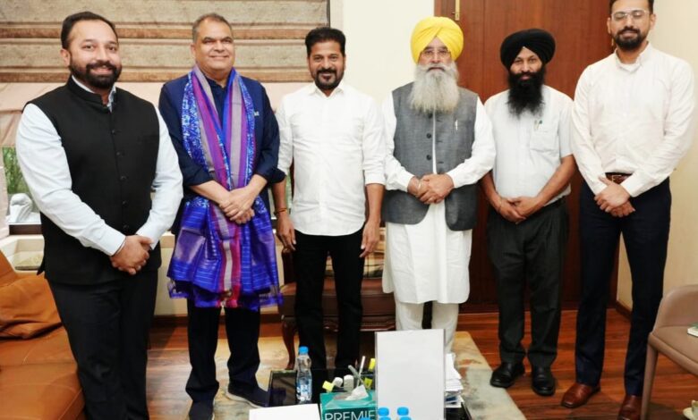 एक महत्वपूर्ण राजनयिक भेंट के तहत पंजाब के कैबिनेट मंत्री संजीव अरोड़ा और गुरमीत सिंह खुड्डियां ने तेलंगाना के मुख्यमंत्री रेवंत रेड्डी से मुलाकात की। इस अवसर पर मंत्रियों ने मुख्यमंत्री को पंजाब सरकार की ओर से श्री गुरु तेग बहादर जी के 350वें शहीदी पर्व को समर्पित आगामी स्मृति समारोहों में शामिल होने के लिए औपचारिक रूप से निमंत्रण पत्र भेंट किया।