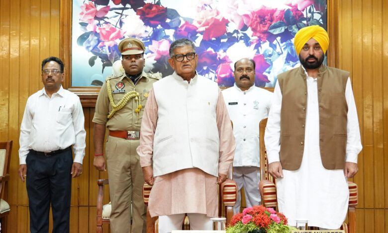 पंजाब के राज्यपाल एवं यू.टी. चंडीगढ़ के प्रशासक गुलाब चंद कटारिया ने आज मुख्यमंत्री भगवंत सिंह मान की उपस्थिति में पंजाब राज भवन में एक सादे लेकिन प्रभावशाली समारोह के दौरान संजीव अरोड़ा को कैबिनेट मंत्री के रूप में पद और गोपनीयता की शपथ दिलाई।मुख्यमंत्री कार्यालय के एक प्रवक्ता ने आज यहां जानकारी देते हुए बताया कि मुख्य सचिव के.ए.पी. सिन्हा ने राज्यपाल की अनुमति से समारोह की कार्यवाही संचालित की। शपथ लेने के बाद संजीव अरोड़ा ने शपथ पत्र पर हस्ताक्षर किए, जिस पर राज्यपाल ने भी हस्ताक्षर किए।