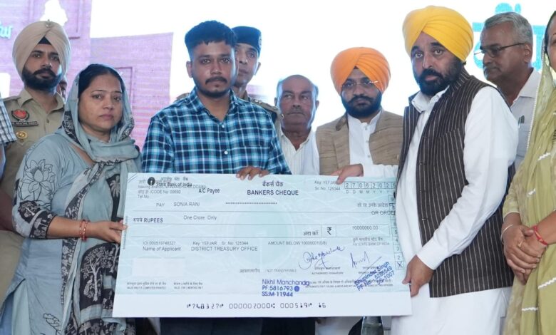 पंजाब के मुख्यमंत्री भगवंत सिंह मान ने आज ड्यूटी के दौरान शहीद हुए ए.एस.आई. धनवंत सिंह के परिवार को एक करोड़ रुपये का चेक सौंपा।