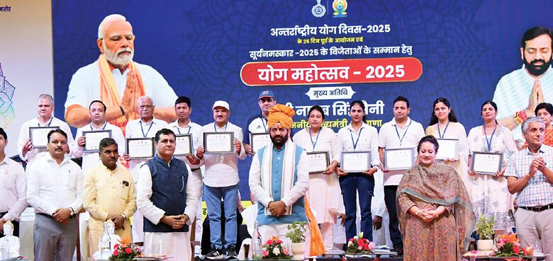 मुख्यमंत्री ने विजेताओं को बधाई देते हुए उनके उज्ज्वल, स्वस्थ और सफल भविष्य की कामना की और कहा कि यह उपलब्धि इस बात का प्रमाण है कि हरियाणा की मिट्टी में प्रतिभा और परिश्रम की कोई कमी नहीं है। उन्होंने कहा कि सूर्य नमस्कार अभियान 2025 में योग संस्थानों, आयुष योग सहायकों, शैक्षणिक संस्थाओं, जेल विभाग, पुलिस, सेना और अर्ध सैनिक बलों की भागीदारी रही, जो हमारे लिए गौरव की बात है। कार्यक्रम के दौरान मुख्यमंत्री ने आयुष विभाग में और अधिक पारदर्शिता लाने के लिए 3 पोर्टल ई-मार्केट प्लेस पोर्टल, आयुष औषधि इन्वेंटरी पोर्टल और ई औषधि लाइसेंसिंग पोर्टल भी लॉन्च किए। इनमें ई-मार्केट प्लेस पोर्टल के माध्यम से औषधीय पौधे तैयार करने वाले किसान, स्टाकिट्स आदि अपना पंजीकरण कर सकेंगे। उनसे कोई भी व्यक्ति औषधीय पौधों की खरीद कर सकेगा। आयुष औषधियों की प्रबंधन प्रणाली पर आयुष विभाग के अधिकारी औषधियों की मांग कर सकते हैं और स्टॉक अपडेट देख सकते हैं। इसके अलावा, लाइसेंसिंग पोर्टल पर नए अथवा लोन लाइसेंस प्राप्त करने, पुराने लाइसेंस के नवीनीकरण आदि के लिए आवेदन किया जा सकेगा। कार्यक्रम को संबोधित करते हुए मुख्यमंत्री ने कहा कि आज का यह योग महोत्सव एक विशेष महत्व रखता है, क्योंकि यह आगामी 10वें अंतरराष्ट्रीय योग दिवस-2025 से ठीक 25 दिन पहले आयोजित किया जा रहा है।