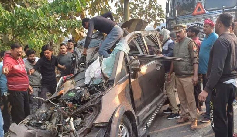 कंटेनर ने कार को मारी टक्कर, पांच की मौत