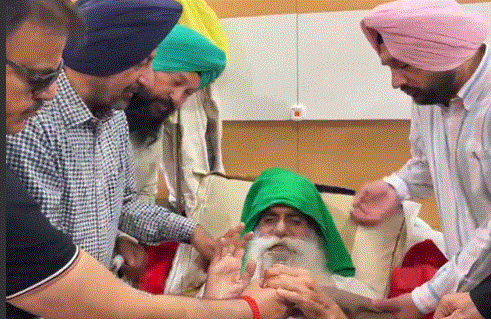 आज पंजाब पुलिस के एडीजीपी जसकरन सिंह, डीआईजी नरिंदर भार्गव, लुधियाना के एसीपी हरजिंदर सिंह गिल, डीएसपी गुरजीत रूमाणा पटियाला के अस्पताल पहुंचे, जहां किसान नेता जगजीत सिंह डल्लेवाल भर्ती हैं। उन्होंने जगजीत सिंह डल्लेवाल को पानी दिया। इस अवसर पर जेल से रिहा हुए किसान भी उनसे मिलने पहुंचे और जगजीत सिंह डल्लेवाल का हालचाल जाना। आपको बता दें, कि 19 मार्च को किसान नेताओं को हिरासत में लेने के बाद से उन्होंने पानी पीना भी छोड़ दिया था। वहीं उनका मरणव्रत पिछले 4 महीने से चला आ रहा था, जोकि आज खत्म हो गया है।
