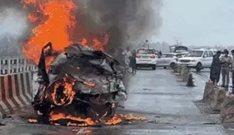 पुलिया से टकराकर कार में लगी आग, परिवार के पांच सदस्यों की जिंदा जलकर मौत