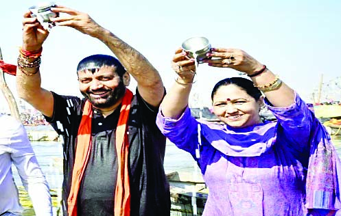 हरियाणा के मुख्यमंत्री नायब सिंह सैणी ने पत्नी संग महाकुंभ में लगाई डुबकी
