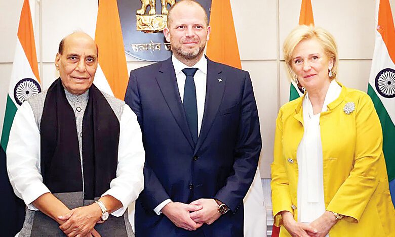 भारत के रक्षा मंत्री राजनाथ सिंह ने सोमवार को नई दिल्ली में बेल्जियम की राजकुमारी एस्ट्रिड और रक्षा मंत्री थियो फ्रेंकेन से मुलाकात की। रक्षा मंत्री ने भारत के रक्षा क्षेत्र में बेल्जियम के निवेश का स्वागत करते हुए अपनी कंपनियों का विस्तार करके भारतीय विक्रेताओं को अपनी आपूर्ति शृंखलाओं में शामिल करने के लिए प्रोत्साहित किया। दोनों पक्ष द्विपक्षीय संबंधों को मजबूत करने के लिए संस्थागत रक्षा सहयोग तंत्र की खोज करने पर सहमत हुए। बैठक में दोनों पक्षों ने इंडो-पैसिफिक, विशेष रूप से समुद्री क्षेत्र में रक्षा जुड़ाव की संभावना पर चर्चा की।