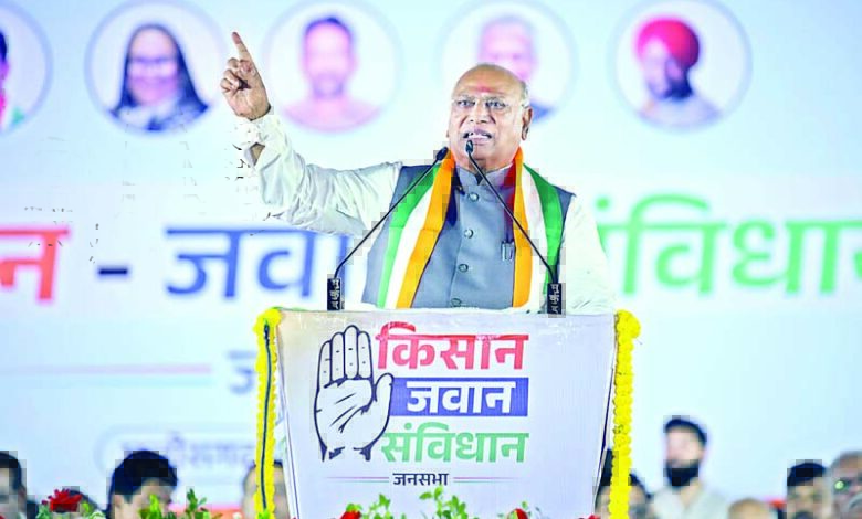 रायपुर। रायपुर में आयोजित ‘किसान, जवान और संविधान’ जनसभा में कांग्रेस अध्यक्ष मल्लिकार्जुन खडग़े ने कहा कि मोदी दो टांगों से चल रहे हैं। मोदी की एक टांग आंध्र की टीडीपी है और दूसरी बिहार के नीतीश कुमार। इनमें से कोई भी हिली तो मोदी जी गिर जाएंगे। खडग़े ने कहा कि केंद्र सरकार भय और झूठ फैलाकर देश पर राज कर रही है। ये लोग हर जगह मिलकर गरीबों को लूटने और डराने का काम कर रहे हैं, लेकिन कांग्रेस का कार्यकर्ता डरने वाला नहीं है, मर-मिटने को तैयार है। उन्होंने कहा कि कांग्रेस की जनकल्याणकारी योजनाओं को भाजपा सरकार ने बंद कर दिया है।