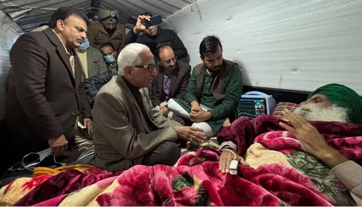 किसानों की मांगों पर चर्चा करने के लिए केंद्र सरकार की टीम खनौरी बॉर्डर पर पहुंची। इस दौरान भारतीय किसान यूनियन (बीकेयू) सिद्धूपुर के नेता काका सिंह कोटड़ा और अभिमन्यु कोहाड़ की उपस्थिति में टीम ने किसान नेता जगजीत सिंह डल्लेवाल से मुलाकात की।