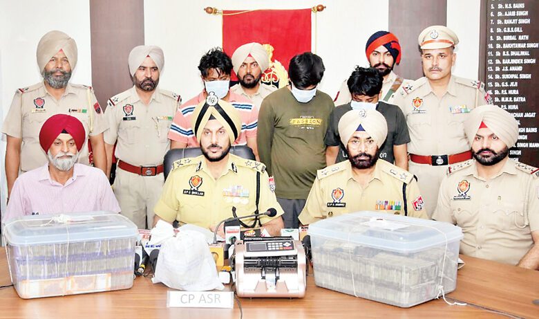 कमिश्नरेट पुलिस अमृतसर ने तुर्की स्थित तस्कर नवप्रीत सिंह उर्फ नव भुल्लर से संबंधित नारको-हवाला गिरोह के तीन कार्यकर्ताओं को गिरफ्तार करके इस गिरोह का पर्दाफाश किया है। यह जानकारी आज यहां डायरेक्टर जनरल ऑफ पुलिस (डीजीपी) पंजाब गौरव यादव ने दी। गिरफ्तार किए गए व्यक्तियों की पहचान अमृतसर के टैक्सी ड्राइवर गुरदीप सिंह उर्फ साब (35), राजस्थान के बीकानेर से कपड़ा दुकानदार प्रदीप शर्मा (29) और लुधियाना के कपड़ा कारोबारी मनी शर्मा (36) के रूप में हुई है। पुलिस टीमों ने उनसे 1.10 किलोग्राम हेरोइन, 1.06 करोड़ रुपए की हवाला मनी (84.02 लाख रुपए नकद और 22 लाख रुपए बैंक खातों में फ्रीज) एक पैसे गिनने वाली मशीन बरामद करने के अलावा उनकी स्विफ्ट डिजायर कार (बिना नंबर प्लेट) को भी जब्त कर लिया है। डीजीपी गौरव यादव ने बताया कि प्रारंभिक जांच से पता चला है कि आरोपी गुरदीप अपने हैंडलर नव भुल्लर के इशारे पर हवाला और नशीले पदार्थों की तस्करी संबंधी स्थानीय नेटवर्क चला रहा था और नव भुल्लर ने उसे अमृतसर में छिपने की जगह के तौर पर इस्तेमाल करने के लिए एक घर और गिरोह चलाने के लिए सारी लॉजिस्टिक्स सहायता प्रदान कर रहा था।