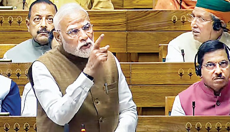 कुछ लोग सेना द्वारा दिए गए तथ्यों की जगह पाकिस्तान के झूठे प्रचार को आगे बढ़ाने में जुटे हुए थे, जबकि भारत का रूख हमेशा स्पष्ट रहा था। लोकसभा में नरेंद्र मोदी ने कहा कि अब पाकिस्तान भी भली-भांति जान गया है कि भारत का हर जवाब पहले से ज्यादा तगड़ा होता है। उसे यह भी पता है कि अगर भविष्य में नौबत आई, तो भारत आगे कुछ भी कर सकता है। इसलिए मैं फिर से लोकतंत्र के इस मंदिर में दोहराना चाहता हूं कि ऑपरेशन सिंदूर जारी है। उन्होंने आगे कहा कि पाकिस्तान ने दुस्साहस की अगर कल्पना की, तो उसे करारा जवाब दिया जाएगा। आज का भारत आत्मविश्वास से भरा हुआ है। आज का भारत आत्मनिर्भरता के मंत्र को लेकर पूरी शक्ति के साथ तेज गति से आगे बढ़ रहा है। देश देख रहा है कि भारत आत्मनिर्भर बनता जा रहा है, लेकिन देश यह भी देख रहा है कि एक तरफ तो भारत आत्मनिर्भरता की ओर आगे बढ़ रहा है, लेकिन कांग्रेस मुद्दों के लिए पाकिस्तान पर निर्भर होती जा रही है।