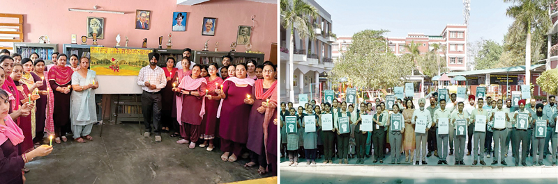 मुकेरियां। बाबा श्री चंद एजुकेशनल एंड वेलफेयर ट्रस्ट मुकेरियां द्वारा संचालित गांव पनखूह स्थित कोहिनूर इंटरनेशनल स्कूल में गुरुवार को प्रिंसीपल लोकेश विमल शुक्ला की अध्यक्षता में कश्मीर के पहलगाम में आतंकी हमले में मारे गए पर्यटकों को छात्रों एवं समूह स्टाफ द्वारा श्रद्धांजलि अर्पित की गई। सुबह की सभा में दो मिनट का मौन रखकर मृतकों की आत्म शांति के लिए प्रार्थना की गई। प्रिंसीपल लोकेश विमल शुक्ला ने गहरा शोक व्यक्त करते हुए कहा कि लोग प्राकृतिक सौंदर्य का आनंद लेने गए थे, पर उन्हें इस प्रकार की हिंसा का शिकार होना पड़ा। इस तरह की घटना से देश की एकता और अखंडता को चोट पहुंचाने की कोशिश की गई है।