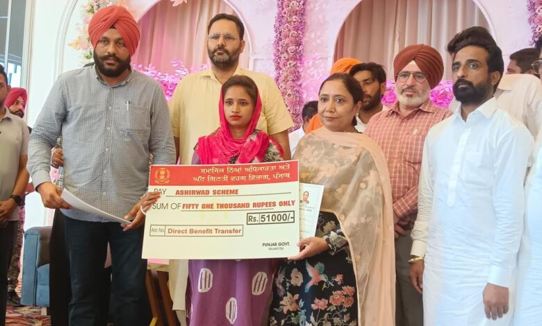 मुख्यमंत्री भगवंत सिंह मान के नेतृत्व वाली पंजाब सरकार द्वारा प्रदेश के कमजोर और पिछड़े वर्गों की भलाई के लिए चलाई जा रही मुहिम के तहत आज कैबिनेट मंत्री डॉ. बलजीत कौर ने मलोट के के.जी. पैलेस में एससी भाईचारे से संबंधित 505 परिवारों को लगभग 8 करोड़ 72 लाख रुपये की राशि की कर्ज माफी के प्रमाण पत्र वितरित किए। इस अवसर पर मंत्री द्वारा आशीर्वाद योजना के अंतर्गत भी 140 लाभार्थियों को 71.40 लाख, 51,000 रुपये प्रति व्यक्ति, के स्वीकृति पत्र भी वितरित किए गए।