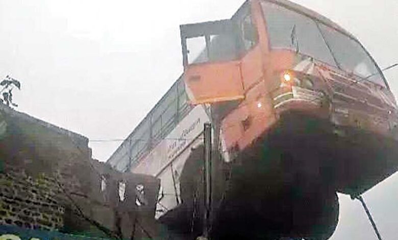 पंजाब के जालंधर में घने कोहरे के कारण दो बसें आपस में टकरा गईं। इससे करीब दो से तीन यात्री जख्मी हो गए। यह घटना जालंधर-लुधियाना हाई-वे पर स्थित कस्बा फिल्लौर में अंबेडकर फ्लाईओवर पर हुई। इनमें से एक बस टकराने के बाद पुल की रेलिंग तोडक़र नीचे लटक गई। दूसरी बस क्षतिग्रस्त होकर डिवाइडर पर चढ़ गई। घटना की सूचना मिलते ही थाना फिल्लौर की पुलिस मौके पर पहुंची। पुलिस ने क्षतिग्रस्त बसों को साइड पर करवाया और हाई-वे पर यातायात सुचारू करवाया। वहीं मौके पर जांच के लिए पहुंचे एएसआई जसविंदर सिंह बताया है कि यह हादसा शुक्रवार सुबह करीब सात बजे हुआ है। घनी धुंध के कारण बसें आपस में टकरा गईं। गनीमत रही कि घटना में किसी भी सवारी को कोई चोट नहीं आई है।