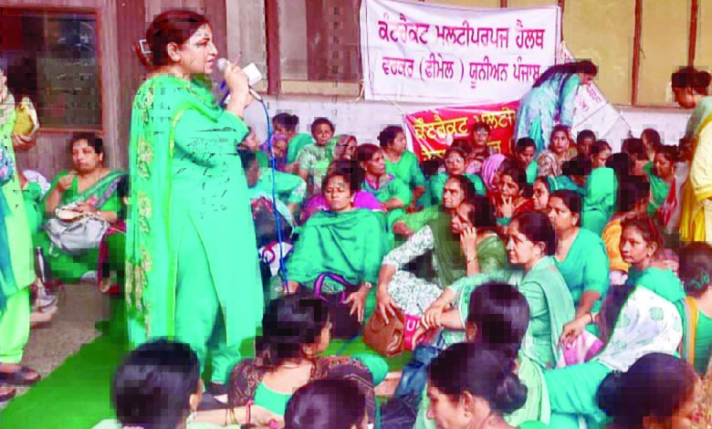 पंजाब भर से आई सैकड़ों कॉन्ट्रैक्ट मल्टीपर्पज़ हैल्थ वर्कर महिला ने आज अपने परिवारों समेत सेक्टर-34 चंडीगढ़ स्थित स्वास्थ्य एवं परिवार कल्याण विभाग के दफ्तर के बाहर राज्य स्तरीय रैली निकाली। यूनियन की राज्य अध्यक्ष सरबजीत कौर ने बताया कि 24 फरवरी 2014 को पंजाब सरकार ने समान काम समान वेतन का निर्णय कैबिनेट में पारित किया था। इसके आदेश 22 दिसंबर 2015 को जारी हुए थे, पर विभाग ने आपत्तियों के बहाने आदेश पर रोक लगा दी और पिछले 10 साल तक कोर्ट केस का हवाला देकर मामले को लटका, रखा। उन्होंने कहा कि 10 फरवरी 2025 को हाईकोर्ट ने रोक हटाकर विभाग को कार्रवाई के आदेश दिएए लेकिन 5-6 महीने बीत जाने के बाद भी कोई कदम नहीं उठाया गया। नेताओं ने आरोप लगाया कि सरकार स्थायी नियुक्तियों और वेतन आदेशों पर झूठा ड्रामा कर रही है और हाईकोर्ट के फैसलों को लागू नहीं करती। यूनियन नेताओं ने कहा कि 10 जून 2025 को स्वास्थ्य मंत्री बलवीर सिंह और प्रधान सचिव कुमार राहुल ने बैठक में आदेश लागू करने की सहमति दी थी पर विभाग टालमटोल कर रहा है।