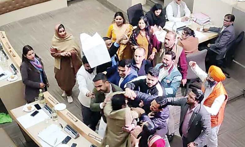 नगर निगम हाउस में हाथापाई, दस मिनट के लिए रोकनी पड़ी कार्रवाई
