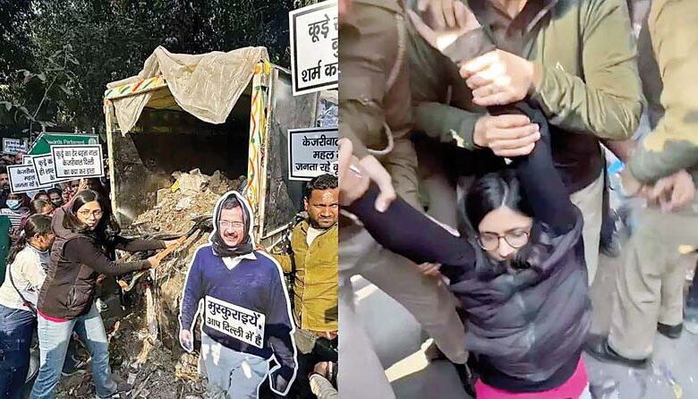 आम आदमी पार्टी की राज्यसभा सांसद स्वाति मालीवाल गुरुवार को विकासपुरी से तीन गाडिय़ों में कूड़ा भरकर आप के नेशनल कन्वीनर और दिल्ली के पूर्व सीएम अरविंद केजरीवाल के आवास के बाहर पहुंच गईं। उन्होंने कहा कि दिल्ली सरकार राजधानी में सफाई व्यवस्था मुहैया कराने में विफल रही है, इसलिए अब वह अरविंद केजरीवाल के आवास के बाहर कूड़ा फेंकेंगी।