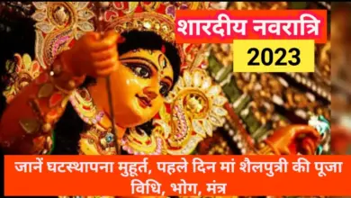 शारदीय नवारत्रि 2023 ; जानें घटस्थापना मुहूर्त, पहले दिन मां शैलपुत्री की पूजा विधि, भोग, मंत्र