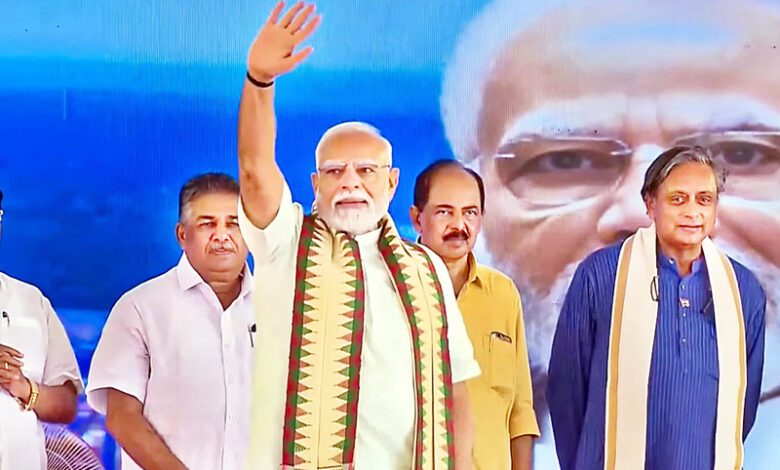 प्रधानमंत्री नरेंद्र मोदी ने शुक्रवार को केरल में 8900 करोड़ रुपए की लागत से निर्मित विझिनजाम अंतरराष्ट्रीय बंदरगाह का उद्घाटन किया। यह भारत का पहला मेगा ट्रांसशिपमेंट कंटेनर टर्मिनल है, जो वैश्विक व्यापार में भारत की स्थिति को मजबूत करेगा, रसद दक्षता को बढ़ाएगा और विदेशी बंदरगाहों पर निर्भरता को कम करेगा। इस दौरान उनके साथ मंच पर केरल के मुख्यमंत्री पिनराई विजयन और कांग्रेस सांसद शशि थरूर भी मौजूद थे। बंदरगाह का उद्घाटन करने के बाद मोदी ने केरल के मुख्यमंत्री पिनराई विजयन को विपक्षी दलों के ‘इंडिया’ गठबंधन का एक ‘स्तंभ’ बताया और उन्हें एवं मंच पर मौजूद कांग्रेस सांसद शशि थरूर से कहा कि उद्घाटन समारोह कई लोगों की ‘रातों की नींद हराम’ कर देगा। प्रधानमंत्री मोदी ने विपक्षी गठबंधन पर चुटकी लेते हुए कहा कि मैं मुख्यमंत्री जी से कहना चाहता हूं, आप इंडिया गठबंधन के एक मजबूत स्तंभ हैं, शशि थरूर जी भी यहीं बैठे हैं।