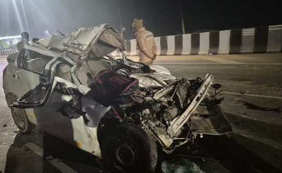 यूपी: गाय से टकराने के बाद तेज रफ्तार ट्रक से टकराई कार